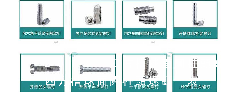 1)開槽普通螺釘多用于較小零件的連接。它有盤頭螺釘、圓柱頭螺釘、半沉頭螺釘和沉頭螺釘。盤頭螺釘和圓柱頭螺釘的釘頭強度較高,瑁在普通的部件連接上;半沉頭螺釘的頭部呈弧形,安裝后它的頂端略外露,且美觀光滑,一般