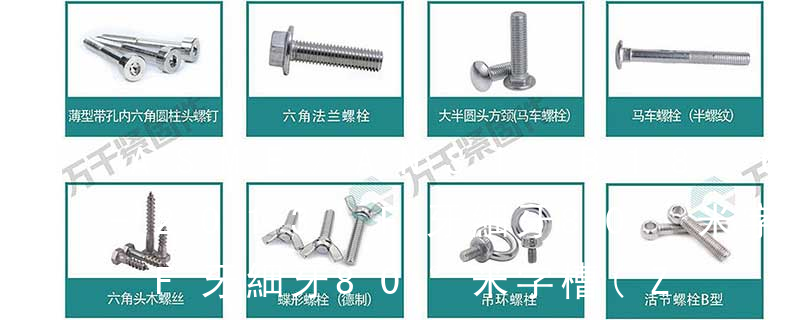 1.機螺釘 2.自攻螺釘 3.鉆尾螺釘 4.墻板釘 5.纖維板釘 6.木螺釘7.六角木螺釘 8.不脫出螺釘 9.組合螺釘 10.微型螺釘 11.家具螺釘 12.電子螺釘頭型:1.六角頭(hexagon head) 2.六角頭法蘭面(hexagon head with flange) 3.
