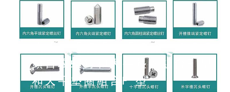 外扳擰:六角、六角法蘭面、六角凸緣、六角花形等;內扳擰:一字槽、十字槽H型、十字槽Z型、十字槽F型、四方槽、復合槽、內花鍵、內六角花形、內三角、內六角、內12角、離合器槽、六葉片型槽、高扭矩十字槽等。3、