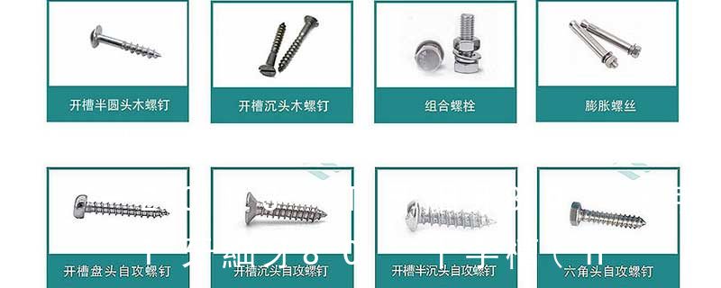 六角花形等;內扳擰:一字槽、十字槽H型、十字槽Z型、十字槽F型、四方槽、復合槽、內花鍵、內六角花形、內三角、內六角、內12角、離合器槽、六葉片型槽、高扭矩十字槽等。3、螺紋種類螺紋種類繁多,有自攻螺紋(