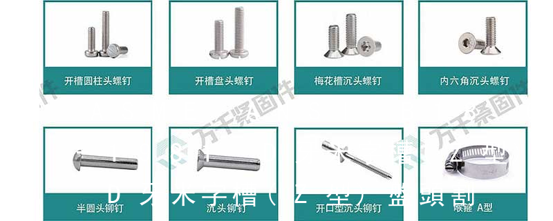 1.機螺釘 2.自攻螺釘 3.鉆尾螺釘 4.墻板釘 5.纖維板釘 6.木螺釘7.六角木螺釘 8.不脫出螺釘 9.組合螺釘 10.微型螺釘 11.家具螺釘 12.電子螺釘頭型:1.六角頭(hexagon head) 2.六角頭法蘭面(hexagon head with flange) 3.