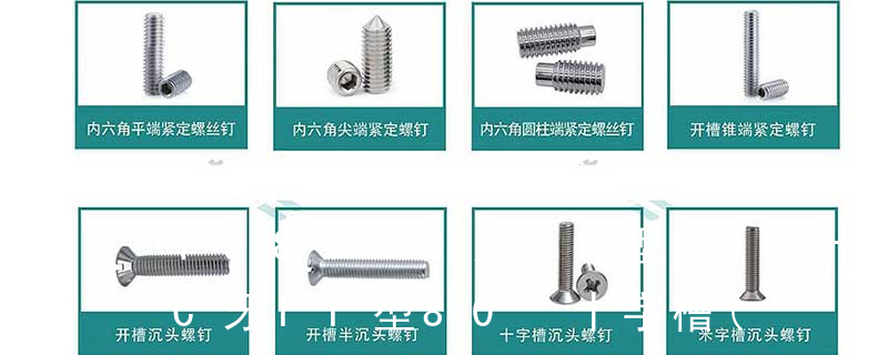 另像ANSI、ASME等的螺紋是以英寸為單位的稱為美標螺紋。除了公制螺紋和美制螺紋外還有一種BSW—英制標準,其螺紋也是以英寸為單位,俗稱惠氏螺紋。 公制螺紋是以MM(毫米)為單位,它的牙尖角為60度。美制螺紋和英制螺紋都是 B:球面圓柱頭; C:圓柱頭; F(K):沉頭; H:六角頭;HW:六角頭帶墊圈; O:半沉頭; P:平元頭; R:半元頭;PW:平元頭帶墊圈; T:大扁頭; V:蘑菇頭;④ 螺釘牙型 A:自攻尖尾(日標第1種)疏